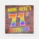 Framsidan av den här pappra napkindesignen med öga-infångande, roligt och spännande födelsedag har ett eget namn och meddelandet "71ST BIRTHDAY!" med brev med ett flerfärgat regnbågsspektrum inspirerat mönster, på en tegelvägg inspirerad av mönster. Stil inspireras av graffiti eller gatukonst som dras på en mur. Roligt pappra servetter som den här kan användas i en födelsedagsfest till någon som firar sin 71:a födelsedag. [~Z0000367]
