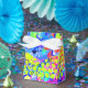 Den här digitala graffiti har hela det levande färg av salt vatten fisk. Blåblå nyanser i många blandas med gult, orange, lila, kalkgrönt, rosa, akva, svart. De olika struktur och opaciteterna ge ligger till grund för mönsterdjupet.