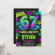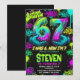 Celebrate your little one's big milestone with this vibrant, urban-style 7th birthday invitation. Featuring a bold, neon color palette of electric lime green, hot pink, and cyan, this design captures the raw energy of street art and graffiti culture.