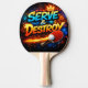 The "Serve & Destroy" design presents a bold and energetic graffiti street art concept for ping pong lovers. With its combination of electric blue and fiery orange, paint splash effect, crown icon, and flaming bat and ball illustration, this artwork is perfect for custom bat designs, ping pong t-shirts, tournament posters, and sports merchandise.