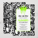 🎉 Börja firandet med ett slående urban art-verk som omedelbart berättar för gästerna datumet. Framsidan visar ett tätt fält av svartlinje-graffiti på en skarp vit duk, krönt av en grön dropp-formad krona högst upp. Nedanför rymmer en bred vit rektangel med en fin grön kant alla festsdetaljer, vilket gör denna "save the date"-födelsedagsinbjudan till ett stilrent tillkännagivande som känns fräscht för alla åldersgrupper. 🎊✨