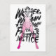 Kolla in den kvinnokonturen omgiven av hennes logotyper och definiera ord, som "Fierce", "Strength", "Justice" och "Grace".