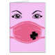 Dessa t-shirts och andra artiklar är adorerade med en stiliserad bild av en ansikte som bär en rosa medicinsk mask.