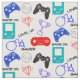 Cute gamer-temat mönster med konsolstyrenheter och spelikoner för roligt i blå, rött svart och vitt, idealiska för barn och märken.