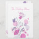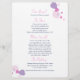Dubbla-sidig, enkel, modern petal-konetti-stil-bröllopsmiddagsmeny på söt rosa, lila, plommon och marinknutor. Unik designad av Sarah Trett. www.sarahtrett.com för www.mylittleedenweddings.com