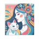 En illustration av Cat Dam tillsammans med katten. För dam som kärlek katter och kattungar.