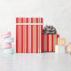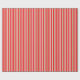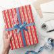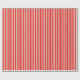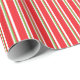 Randig grafisk julomslutning papper i ljumrött, grönt och grädde. Designad av Sarah Trett.