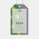 En söt och grov grönt Julgran, med ljus på. Bakgrunden himlar är fluffy grått. På framsidan finns lodrät hälsning, "God jul!" som standard. På baksidan finns "Till" och "Från" på en halvgenomskinlig ruta med tillräckligt med utrymme för att skriva namn. All text kan enkelt anpassas eller tas bort. Du kan också justera teckensnitt och färg.
