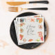 En unik napkin för att slutföra sökningen. Din möhippa. Med brunch mat-vattenfärgsillustrationer som omger ett huvud med texten "Cheers to kärlek..Future MRS. Om du behöver någon matchande artikel, säg till Maria Lycklig att hjälpa till!