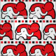 Visa kärlek för elefanter med den här söta, svarta, vita och röda grafikturen hos elefanter och kalvar mono. Perfekt för att skapar en speciell sydd för ett barndaghem för att uppmuntra synstimulering i spädbarn. Sarah Trett har på ett unikt sätt illustrerat och designat.