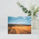 Dela med dig av det vackra utomhuslivet med detta slående vykort. Med en livfull, grafisk illustration av en slingrande sommarväg genom gyllene vetefält mot en dramatisk blå himmel. Denna posteriserade landskapsdesign är perfekt för att skicka varma hälsningar, resemeddelanden eller behålla som ett miniatyrkonsttryck.