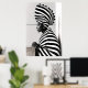 Gör ett slående påstående med den här fängslande svartvita bilden, en mästerlig visning av avant-garde mode och fet grafik. I elegant porträtt finns en kvinna med bedövande poise som är full av ett enastående, skulpturellt huvudstycke som smidigt flyter in i ett dramatiskt, omfångsrikt omfång. Såväl hörnet som hennes attityder är adormerade med fet, omulterande zebra ränder, som skapar en mesmeriserande synrytm som accentuerar hennes form. Hennes mörk har en strålande kontrast mot det nakna vita rand, medan en chic som öronar ger en aning subtil gnistra. Genom att luta sig försiktigt mot en texturerad sten yta och en pristinvit vägg framhävs linjer dynamiska samspel och konstruktionens kraftfulla grafiska kvalitet. Perfekt för moderna livsmiljöer, studioer i mode eller någon dekoratör som vill ha en liten elegans, minimalistisk fläkt och en oförglömlig konstnärlig närvaro.
