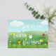 Följ med oss på påskäggsjakt . Festinbjudan med grafiskt påsklandskap . Anpassa båda sidor med dina egna festinformation .