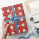 Grafiskt vävt rött på anpassningsbarkrämfärg presentpapper