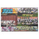 En collage av det djärva färgrika grafittitillfångatagandet från tåg och byggnader i Cincinnati OH