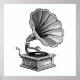 Vintage Gramophone Illustration Retro Music Player in Black and White Art, old gramophone with vinyl record