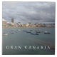 En panoramisk syn på båtar utanför Las Canteras Beach i Las Palmas de Gran Canaria på Kanarieöarna tryckt på en keramisk bricka i souvenir.