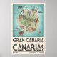 Gran Canaria Vintage Ökartetryck - Handritad Poster