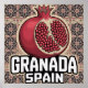 Fira Granadas skönhet, Spanien, med denna unika form av granatäpple som inspirerats av Alhambra's Moorish mönster. Perfekt för resenärer, Spanien älskare och alla som beundrar andalusisk konst.