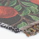 Pomegranat grenar med lush löv och röda riker löper tvärs över en svart bakgrund. Ett sekundärt lagrar tonas bort och lägger till djup. Inslag skannas och består av i mönster i Photoshop, som traditionellt färgats pappert med markörer.