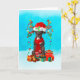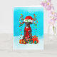Grand danois i snö med julklappar kort