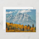 Bilden visar en Aspen-grova höst färger med snö täckta berg i bakgrunden, Grand Teton National Park.