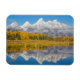 Det nya snöfallet täcker stortettonbergen en höstmorgon, som Schwabacher Landing, USA, Wyoming, Grand Teton nationalpark, reflekterar i vatten. | DanitaDelimont.com | Elizabeth Boehm | US51 EBO0716