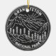Grand Teton monoline design. Parken omfattar de största topparna i Teton-området och de flesta av de norra delarna av dalen som går under namnet Jackson Hål.
