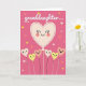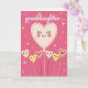 This greeting card shows a large cream-colored heart balloon near the top, with closed eyes, rosy cheeks, and a calm little smile. A dashed outline around the heart looks like stitching, giving it a cozy, cared-for feel. Below it, six smaller heart balloons float together, each with a different happy face—some grinning wide, others smiling softly. Their colors are gentle yellows, creams, and light pinks, and each one has the same dashed “stitched” edge. Thin strings hang down from the balloons, and the background is deep fuchsia with tiny hearts scattered in white, yellow, and pale pink. At the very top, the word “granddaughter...” appears in a cursive-style font, making it clear who this is meant for. It feels meaningful because the sweet expressions and soft colors say “I’m thinking of you” in a simple, loving way 🥰❤️. Hope it helps you share your Valentine’s Day sentiments.