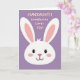 This card shows a front-facing white bunny on a soft pastel lavender background, giving the scene a gentle, friendly mood 🐰. The bunny’s long ears reach upward and frame the message area, as if it’s leaning in close like a sweet little companion. Its face is kept simple with large round black eyes, a small pink nose, and a slight curved smile that reads like quiet affection. Light pink oval blush marks sit on both cheeks, adding a tender, caring look that suits a close family bond. Centered above the bunny’s head, the text reads “GRANDDAUGHTER, somebunny Loves YOU!” in magenta lettering with a thin white outline. The word “YOU!” stands out at the end, making the message feel extra direct and warm without crowding the design 🌷. The overall colors stay soft—lavender, white, and pink—so the character and message stay easy to notice. The bunny’s ears, eyes, nose, and blush are the main details against the smooth lavender field.