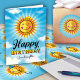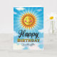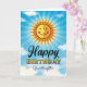 Få din mordotter att känna sig speciell på sin födelsedag genom att skicka henne den här trevliga leende dekorativa Gulten och orange sol som flyter i blå himmel med moln. Inuti texten står det: "sol började skaka lite ljusare den dag du föddes."