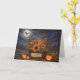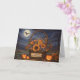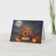 Ett charmerande och festande Happy halloween-kort för din dotterdotter, med en basket av livfulla höstblommor mot natt med ett glödande måne och drivande moln. Ett härligt hälsningskort.