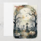 Söker du efter ett Julhälsningar kort som överskrider de onda aningarna i denna dödliga spole? En som erkänner säsongens spektakulära symfoni utan att tillgripa det vanliga, cloying clatter of candy corn och costume chaos? Titta inte längre. Detta kort är ett bevis på att det även i de mest ödesdigra landskapen finns ett visst liv - eller kanske oliv - kvar. Ett fullt, strålande måne hänger som ett bortglömt mynt i himmel och belyser en kyrkogård där två jack-o'-lyktor, med sina tomma, vetande sjömil, står vakt. Det är bara vinden som kan förstå träd- och skeletthemligheter, viskhemligheter. Och där är de, fladdermus, själva förkroppsligandet av nattfriheten, som skär över den underbara kosmiska scenen. Men det som verkligen skiljer detta åt är dess djupa praktiska tillämpning. Det är inte bara ett kort, det är ett filosofiskt påstående. "Happy halloween!" förklarar det, en enkel, men djup hälsning. Men då lägger det till, med en vetande blinkning, "eller din ände". Det är en subtiv artefakt som är lika lämplig för en festlig önskan till en vän eller som ett sista, påfallande budskap till en fiende, eller kanske till den ofrånkomliga tidens marsch. Det är motsägelsefullt: makaber men ändå elegant, humoristisk men djupt allvarlig. Det är perfektens sätt att kommunicera med dem som uppskattar kyrkogårdens poesi, skönheten i barren och det absurda i att fira vår flyktiga natur. För vad är Halloween om inte en klänningsrepetition för den stora finalen?