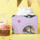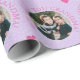 Det är redo för dig att ladda upp ditt favoritfoto när du slår in papper för rosa och lila färgad. Bakgrunden har en mönster av små utspridda lilaska hjärtan och större rosa hjärtan. Lägg till din egen hälsning, eller använda den redan förberedda "WE KÄRLEK You GRANDMA!" i matchande rosa. [Photography © Storytree Studios, Stanford, CA]