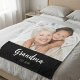 Black White Grandma Established Modern Script Photo Blanket. Replace the photo with your own of your kids and change the years to the years you became a grandmother.