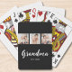 Grandma Established Modern Script 3 Photo Black Playing Cards. To customize, replace the photos and change the year.