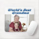 Mousepad med världens bästa mormor med ditt eget foto och 3D Havsblå text.