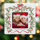 Behåll julklappsdekoration för den bästa mormor som någonsin har bilder av hennes barnbarn och familj som visas i ett rött vismligt vågigt ram gräns, försedd med vattenfärgade illustrationer av en röd coquette-buk och säsong mistletoe greenery. Anpassa om hon ska behandlas som mormor, nana, grammy osv.