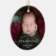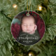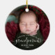 Help them celebrate their first grandchild with this beautiful modern keepsake ornament. The white text reads "Our first Christmas as grandparents," with the word "grandparents" in elegant handwriting script with flourishes before and after. Easily replace the sample image with your favorite photo of the new baby, and add his or her name and the year.