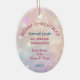 Här är ett vackert prydnadsnamn för den första julen av den mycket speciella sonson eller barndottern. Framsidan har en bild av en undermålig liten, kär beklädnad med en tealblåa båge och sitta med en söt tealkolv träd. Bilden placeras på blekens rosa och lavender-bakgrunden. Det finns en anpassningsbar fält vid grund som för närvarande säger "Första jul", men du kan ändra texten eller ta bort den helt, om du vill. Baksidan av dekorationen har samma bakgrund, med fält som du kan anpassa. Säg spelar ingen roll att du vill!