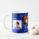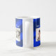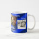 Personlig sonsons fotogåva mugg för morföräldrar eller föräldrar med fyra fotomallar. Bredd, målad blå rand är bakgrunden till pojkens foton med en ställe för texten "Grandsons" eller "Sons" eller "Barnbarn" och ett underordnat meddelande, t.ex. "Vi kärlek du Nana & Pappa". Lägg till varje pojkes (eller barns) namn ovanför fotot. Använda foton med subjekt i mitten för bästa resultat. Mugg skrivs ut som du ser det i förhandsvisningen. Om du ändrar storleka kan designen ändras.