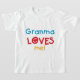 Granma Kärlek Me T-tröjor, karosseri, kort, påsar och andra artiklar med blå, röd och gult textdesign.