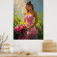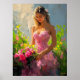 Firar skönhet och ära med den här fantastiska imponerande konstbilden med en kvinna i en rosa klänning omgiven av blommor i en solbelyst trädgård. Biet fångar naturens lugn och elegans, perfekt för romantiska och tidlösa murdecor