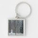 Grannens vinterscen i Snö i Snögubbe Fyrkantig Silverfärgad Nyckelring