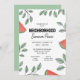 Denna inbjudan till sommarlandskap innehåller en enkel gräns av vattenmelonskivor och grenar av grönt löv. Med anpassningsbar kan du lägga till information om party.