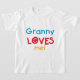 Granny Kärlek Me T-shirts, kort, klistermärken, kokocksväskor och annat med färgstarkt rött, gult och blå text och hjärtdesign. De här märkliga kläderna och presentplaggen på Kärlek får dig att le.