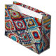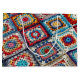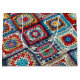 Multifärgade krokékornsrutor ordnas i ett rutnät som var och en har en unik mönster med koncentriska former