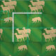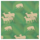 Denna samlare utformar användans skuggsilhuetter av ett Gräns Collie samlare Sheep. Hund- och fårsilhuetterna marscherar över en bakgrund av olika toner av grönt.