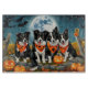 Släpp upp spookandan med den här eerie Halloween-designen med en hundar-förpackning under en mörk, månbelyst himmel, omgiven av flygande fladdermus och glödande pumpor. Perfekt för dem som kärlek en aning skrämmande roligt med sina hårigets vänner!