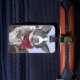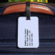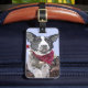 Bagagemärkets framsida är försedd med digital skiss från ett foto av en vacker svart och vit blandning av Heeler från Gräns som bär en röd bandana runt nacke. Byt ut mallfotot mot fotona till djuret. Ett foto i lodräts format fungerar bäst. Fyll i mallen fält med information om baktexten, ta bort text eller klicka på anpassningen för att välja ett teckensnitt stil, storlekt och färg som du vill använda. Vid anpassning kan du också välja en annan bakgrund än färg i blått på baksidan. Den här utformningen av bagagetaggen finns också på affärskortets kortplats stil.
